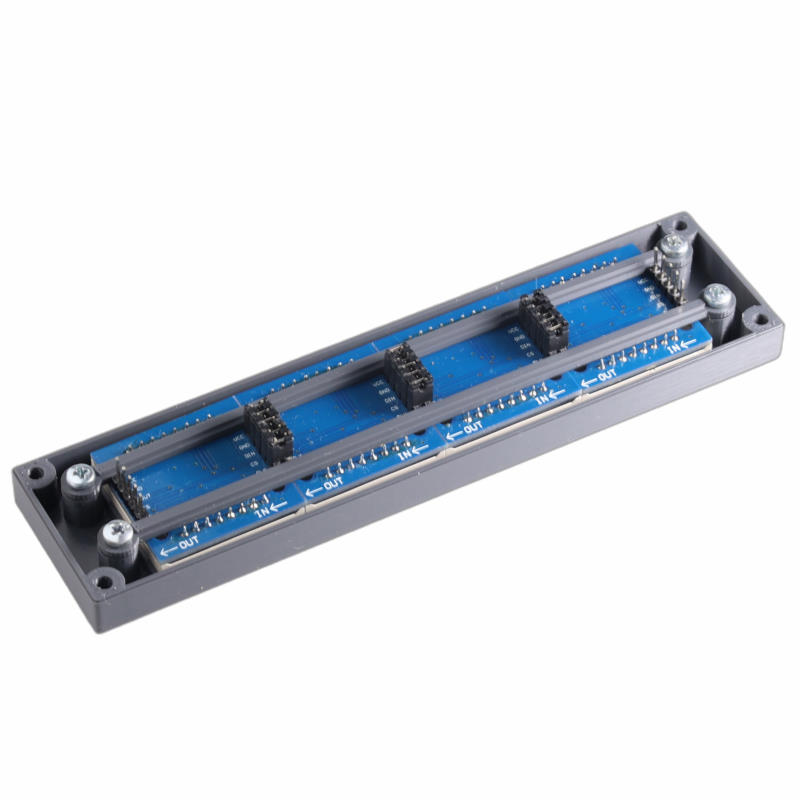 A 4×1 Cover to mount a 5mm LED matrix module with 32×8 LEDs. This does not fit with an Extender. Print the Matrix Cover once and mount it 2 times.