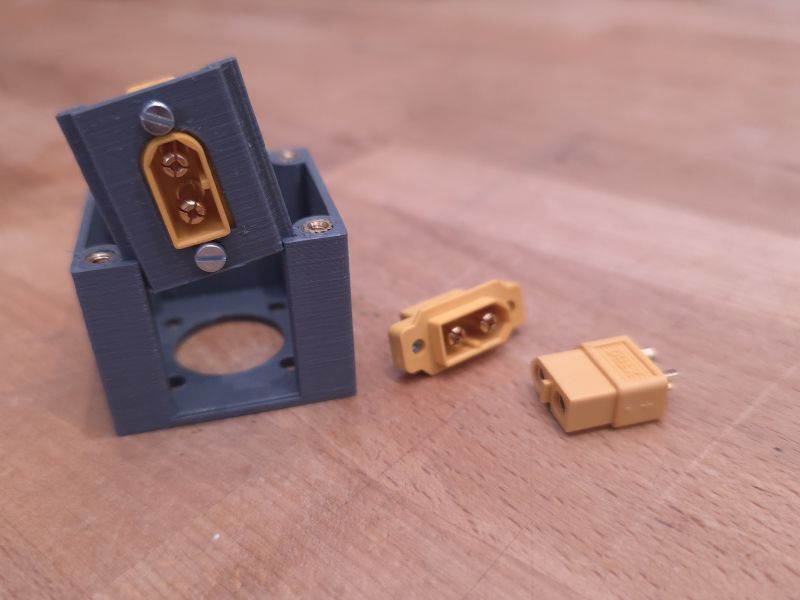 The box itself can be printed without supports. The plate can be printed in two ways. The best orientation is on its small side, which requires a raft. A raft is a little bit painful to remove. The plate for the XT60 connector also requires supports when printed in this orientation. Alternatively, you can print it flat on the print bed. This still needs support, but it doesn’t demand a raft; however, in that case, the print layers’ orientation does not match the box.